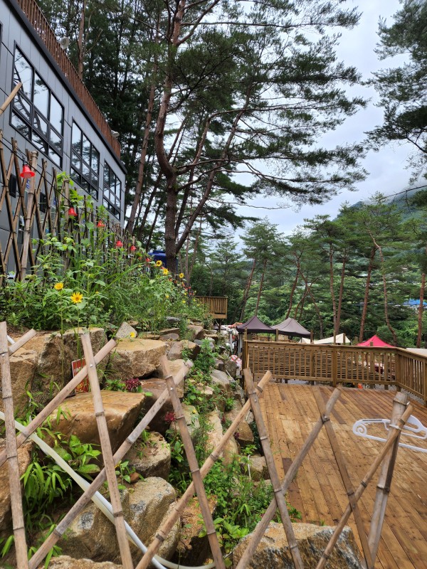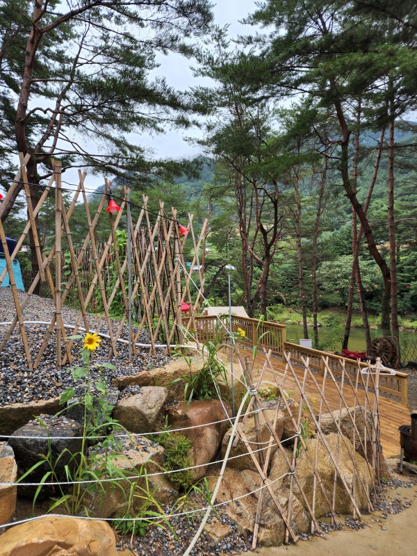 대나무울타리에는봄에 수세미씨를 구해 여섯개정도 심었더니 박나무가 무성하게 자랍니다