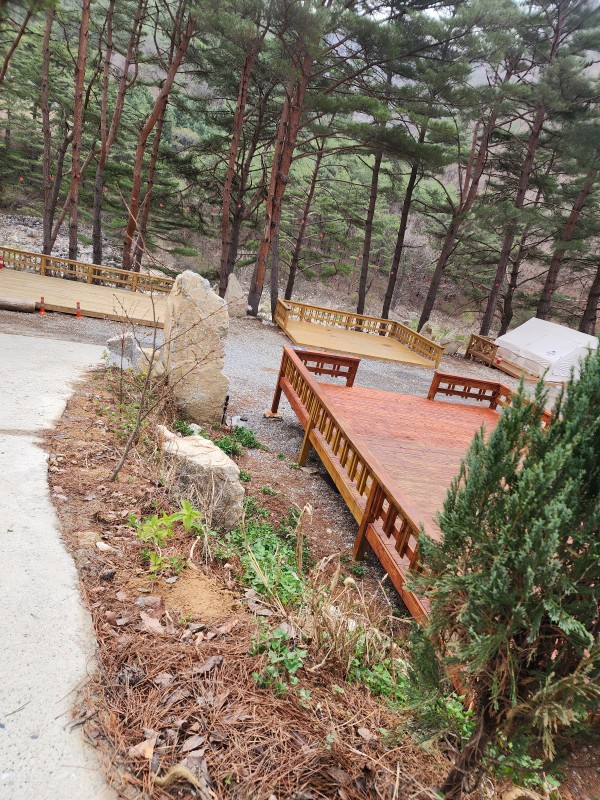 캠핑장에 칠자화 네개 묘목과 앵두나무 한개.포포나무 한개 묘목을 내려오는 언덕길에 심었습니다.
