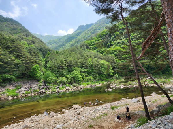 캠장오신 고객분들이 강에 내려가서 여유로운 시간을 보내고 있네요^